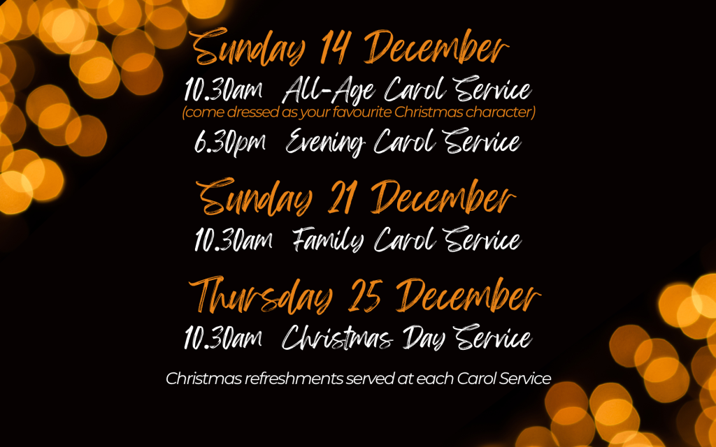 Our Sunday services are at 10.30am each week and at 6.30pm on every 2nd Sunday of each month.